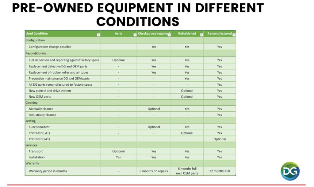 Naast nieuwe machines bieden wij ook tweedehands baan offset drukmachines aan van het type DG-Vision, Gazelle, VSOP en Thallo. De DG-Vision bieden wij dus zowel nieuw als tweedehands aan en de Gazelle, VSOP en Thallo machines bieden wij enkel tweedehands aan.