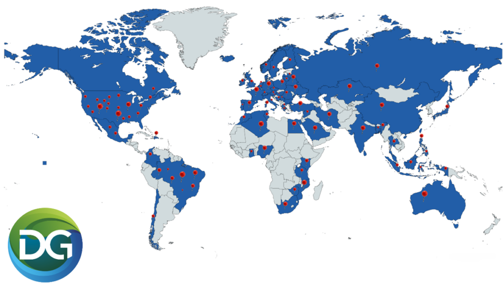 Wij zijn wereldwijd actief. Hieronder laten wij op een wereldkaart zien in welke landen wij actief zijn en hebben wij wereldwijd aan 598 klanten geleverd sinds 01-01-2010.