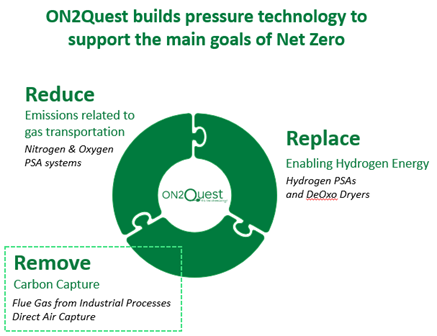 Het Management heeft ruime ervaring op het gebied van productie en zuivering van industriële gassen. Zij waren verantwoordelijk voor de oprichting, de groei en uiteindelijk de verkoop van waterstofleverancier HyGear aan het Canadese Xebec. Gedreven door de wens om te blijven ondernemen en het inzicht dat gaszuivering een kritische rol zal gaan spelen in het behalen van milieudoelstellingen, hebben zij gezamenlijk ON2Quest opgericht.