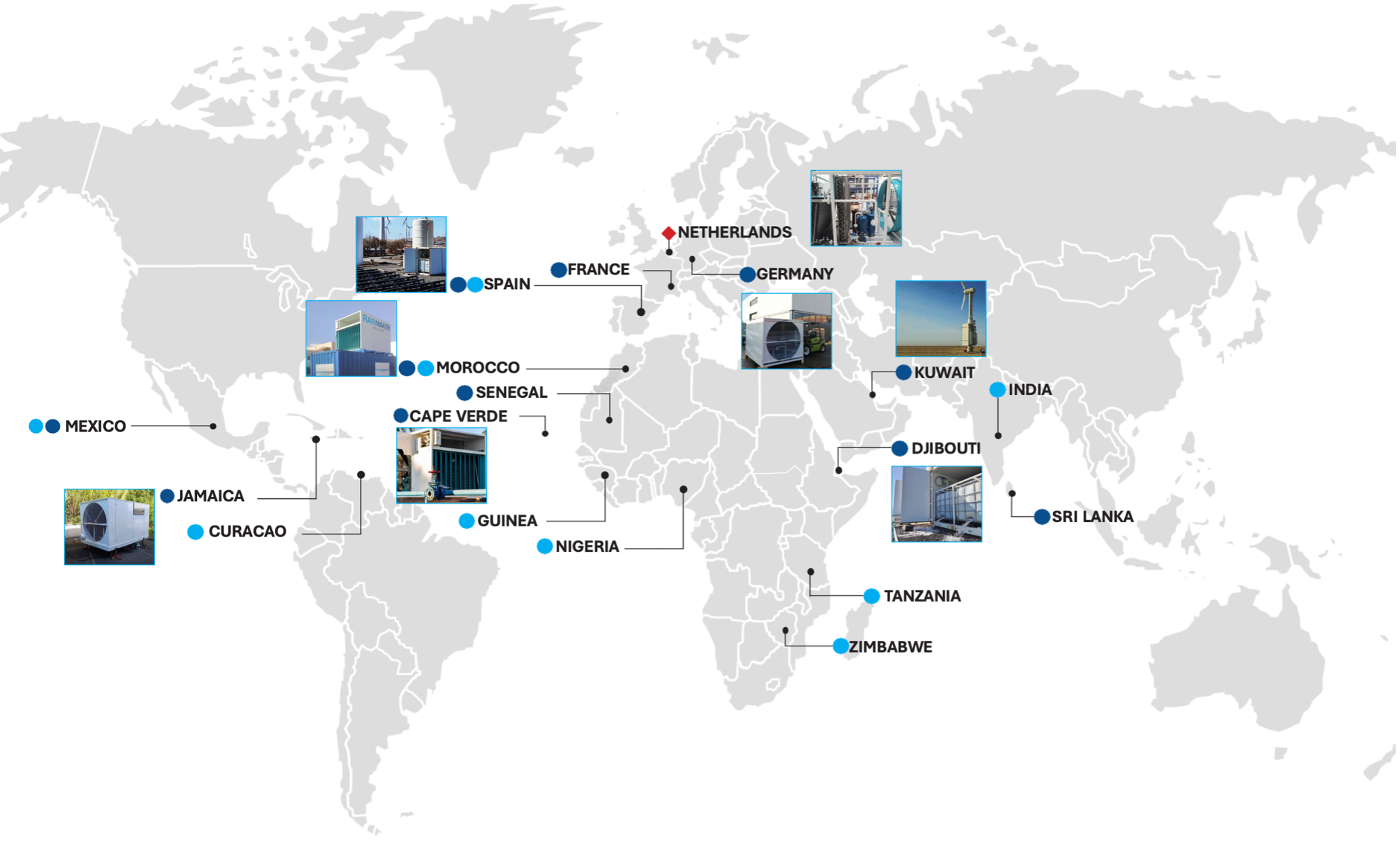 Rainmaker biedt gedecentraliseerde, lokale en duurzame drinkwateroplossingen, waarbij water wordt geproduceerd uit de lucht of uit een lokale waterbron.
