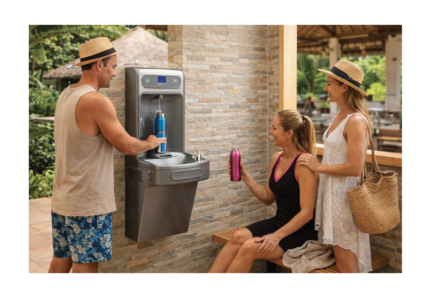 Hier kan men eigen bekers of flessen vullen.