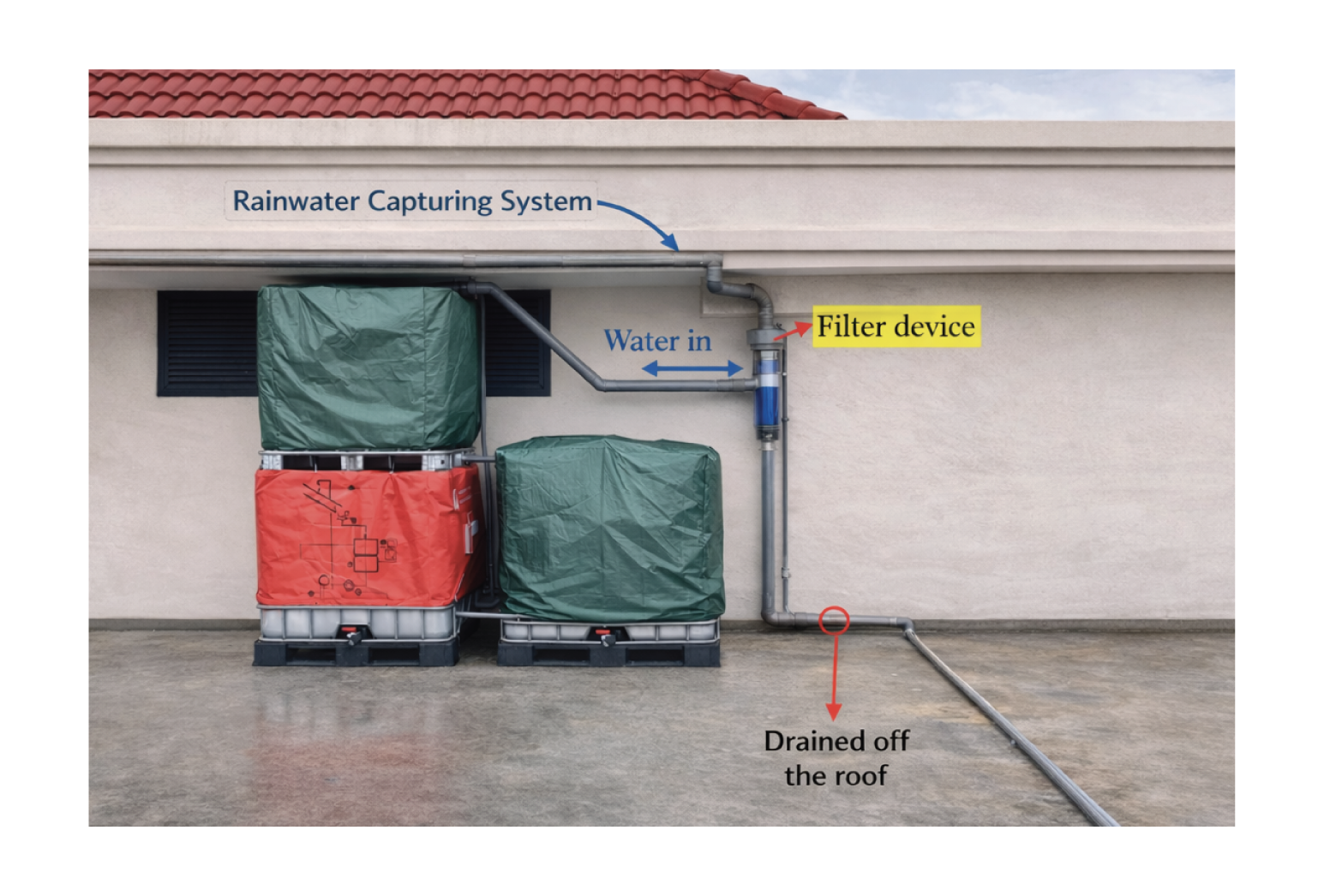 - Is een decentrale oplossing voor wateropvang die neerslag van daken of andere oppervlakken opvangt, zuivert en opslaat voor later gebruik.