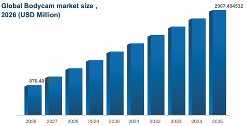Deze ontwikkelingen vertalen zich in een sterke groei van de wereldwijde bodycammarkt, met in 2024 meer dan 5,6 miljoen geïmplementeerde units, voornamelijk binnen wetshandhaving en beveiliging. Het gebruik door publieke veiligheidsdiensten is tussen 2021 en 2024 met 47% toegenomen. Inmiddels maakt meer dan 62% van de politiekorpsen in ontwikkelde economieën gebruik van bodycams.
