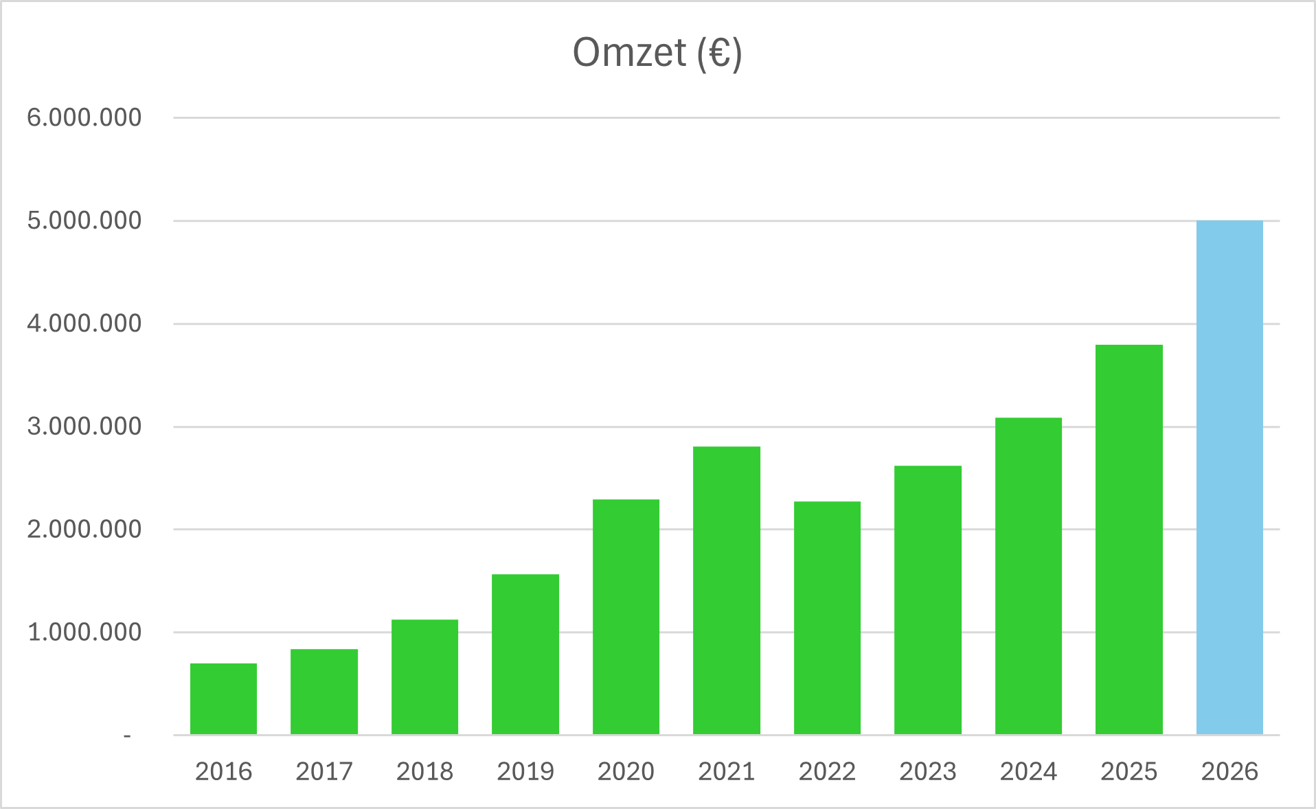 Hieronder staat onze omzet, omzetgroei over de afgelopen jaren en de verwachting voor 2026.